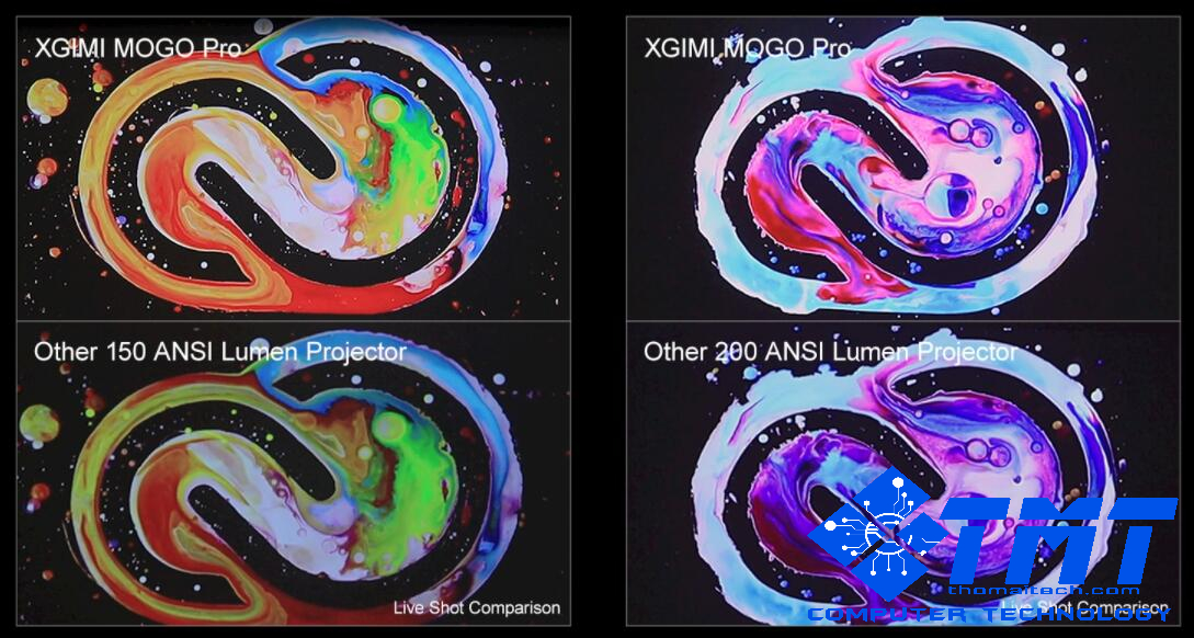 XGIMI Mogo Pro + đem lại nhiều màu sắc hơn, sáng hơn và sắc nét hơn hình ảnh so với các model máy chiếu di động khác trên thị trường vốn chỉ có độ sáng 150 ANSI hoặc 200 ANSI .